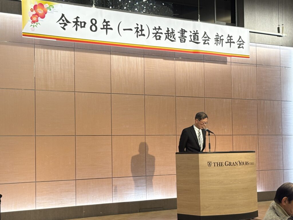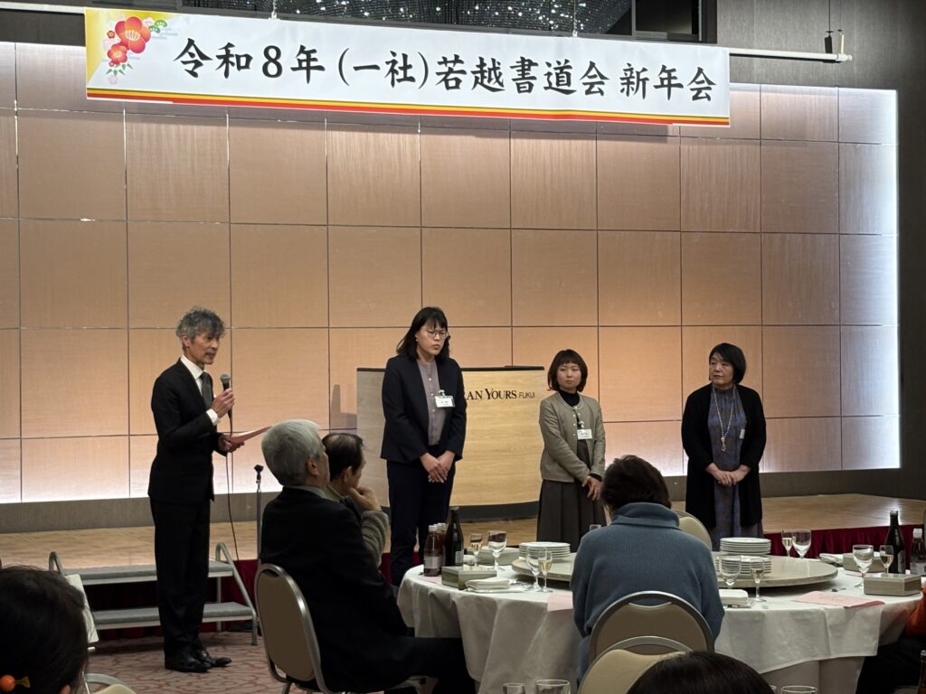 ザ・グランユアーズフクイにて令和8年(一社)若越書道会新年会が開かれました。荒天の中、69名の参加がありました。