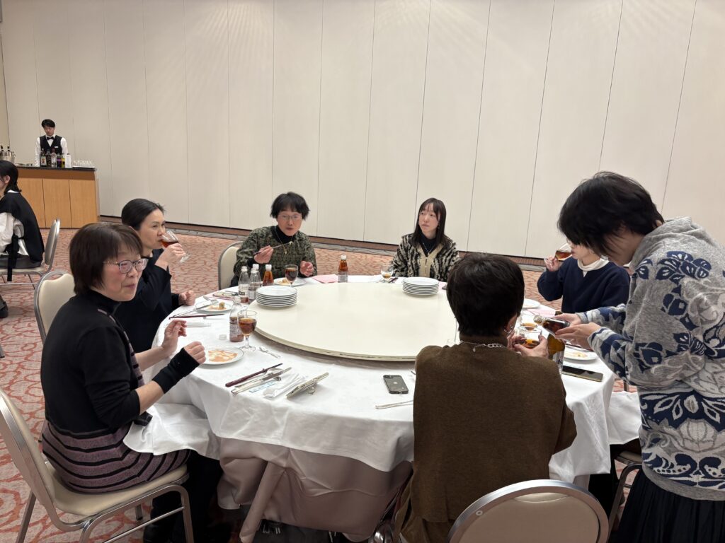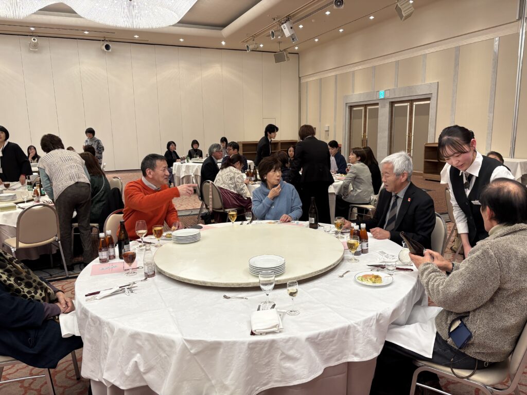 小林玉秋常任顧問による乾杯の後はおいしいお酒や食事をいただきながら、楽しく歓談。会員同士の親睦が深められました。