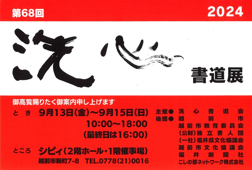 第68回洗心書道展 令和6年9月13日(金)~15日(日)