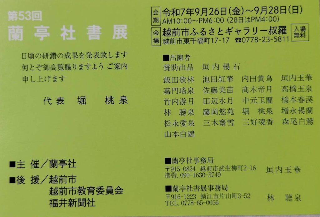 第53回蘭亭社書展 令和7年9月26日(金)~ 9月28日(日)