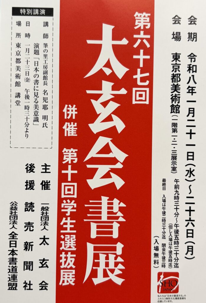 第67回太玄会書展 令和8年1月21日(水)~ 26日(月)