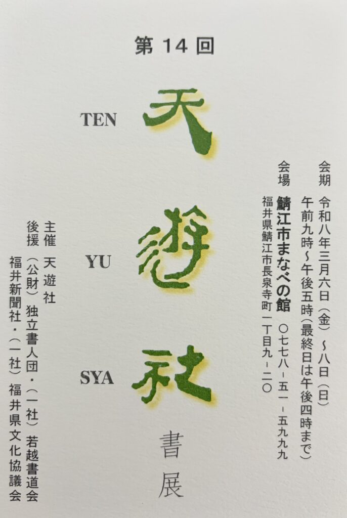 第14回天遊社書展 令和8年3月6日(金)~8日(日)