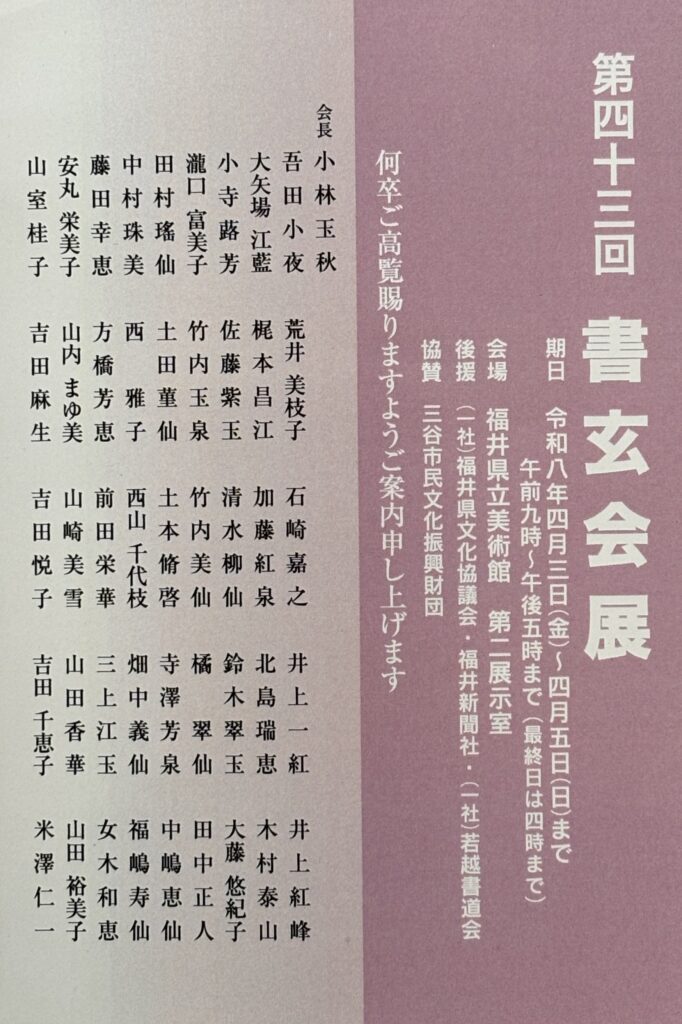 第43回書玄会展 令和8年4月3日(金) ~ 5日(日)