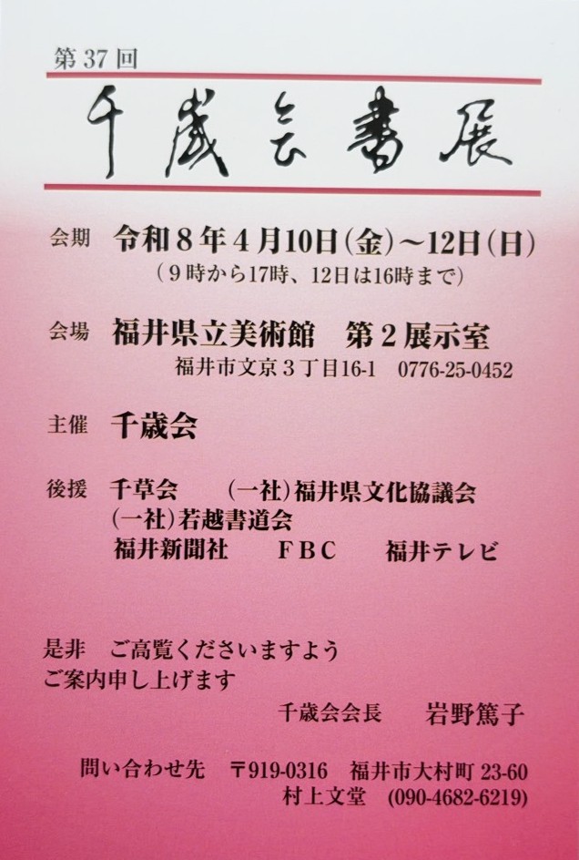 第37回千歳会書展 令和8年4月10日(金) ~ 12日(日)
