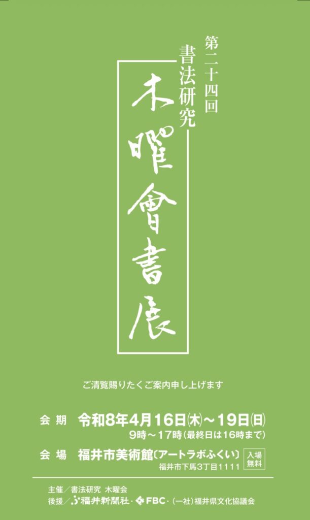 第24回書法研究木曜会展 令和8年4月16日(木) ~ 4日19日(日)